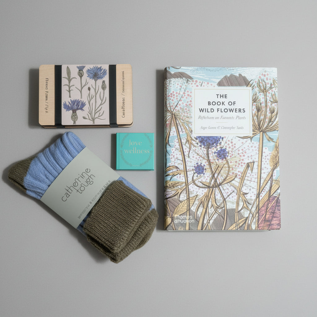 Treat the nature enthusiast in your life to a thoughtful collection of essentials for outdoor adventures and cosy moments in. This curated bundle brings together The Book of Wildflowers for botanical inspiration, a handy Pocket Flower Press to preserve treasured finds from woodland walks, luxuriously soft Cashmere mix socks to keep feet warm and comfortable, and a nourishing Lip Balm to protect against winter's chill. Perfect for anyone who finds joy in the great outdoors and appreciates the finer details of nature.