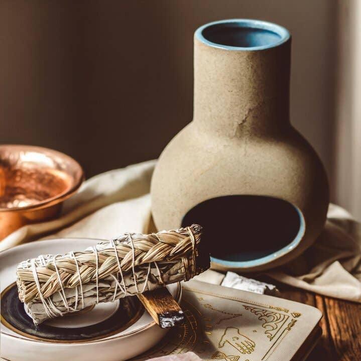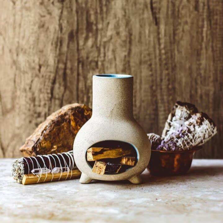 Handmade by skilled potters using traditional techniques, this miniature chiminea is designed for gentle ritual. Use it to burn incense cones, palo santo, or smudge sticks — the small opening allows smoke to rise slowly as the clay warms.