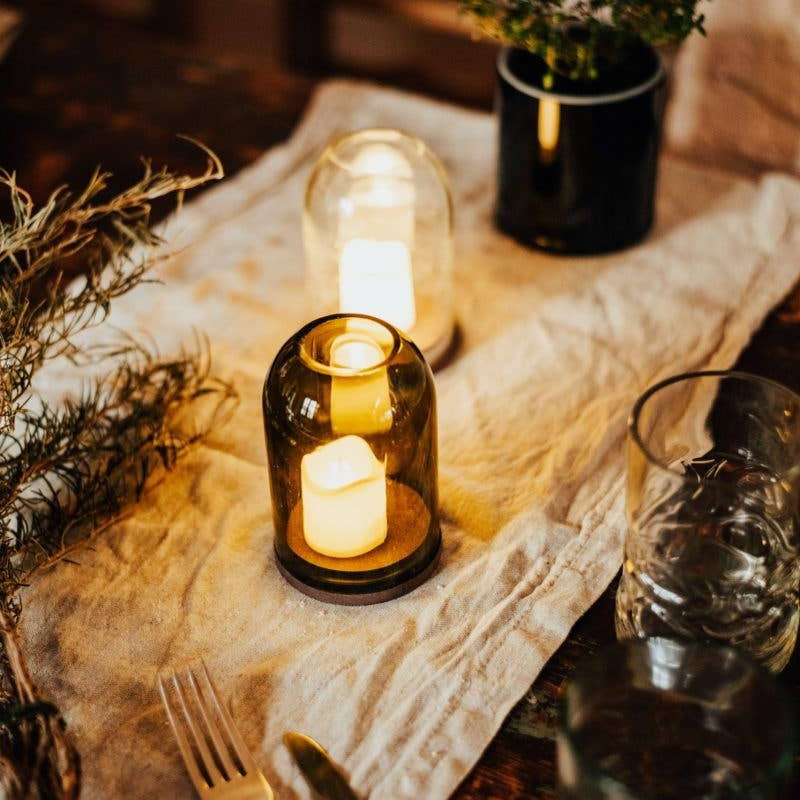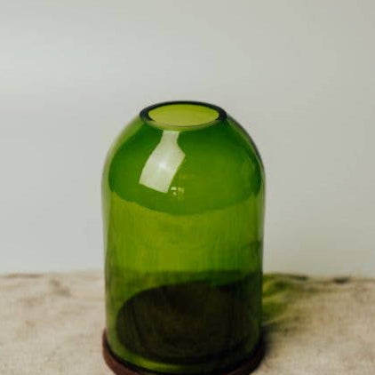 Bring warmth and atmosphere to your home with our Forest Green Glass Candle Dome, a timeless piece crafted from repurposed bottle glass and paired with a sustainable wooden base. Designed to shield tealights from drafts while creating a soft, glowing ambience, this candle dome makes a beautiful addition to both indoor and outdoor spaces.