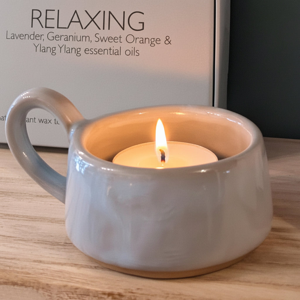 Create a cosy addition to any room with this unique stoneware Tealight cup. Hand-glazed in an eggshell blue, it's handmade in small batches by an artisan pottery in India under a Fair Trade scheme. The classic and practical designs are made to last a lifetime. Brighten up your home with a timeless piece that will be cherished for generations. Makes a beautiful gift when paired with our matching milk bottle match pots.